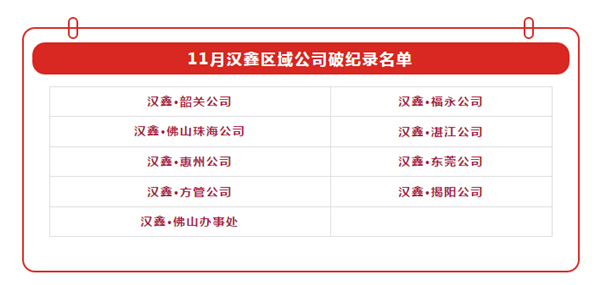 據(jù)集團(tuán)運(yùn)營(yíng)部統(tǒng)計(jì)的數(shù)據(jù)顯示,11月份漢鑫集團(tuán)單月銷量突破5萬噸,創(chuàng)下歷史新高。各區(qū)域公司均表現(xiàn)優(yōu)秀,除集團(tuán)總銷量破紀(jì)錄外,還有九家區(qū)域公司,月度銷量紛紛創(chuàng)造了最高紀(jì)錄。