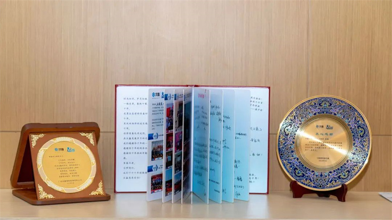 這十年間,漢鑫經(jīng)營與管理邁上新臺(tái)階,方方面面的事項(xiàng)離不開王總奮斗的身影。十周年慶典上,張鴻鵬副總裁為王總十周年致辭,史詩漢董事長作為代表,為王總及其家人送上精心準(zhǔn)備的十周年紀(jì)念禮品。這是感謝、是嘉獎(jiǎng)、更是對(duì)未來的期許。