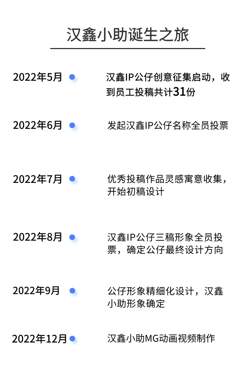 漢鑫小助是漢鑫人共同的智慧結(jié)晶,靈感來源-設(shè)計(jì)-定稿,漢鑫小助誕生的每一步都有漢鑫人深度參與,真正做到了漢鑫公仔,我想·我創(chuàng)。