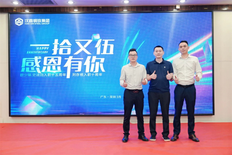 十余年來,歐少鋒、史建勛、劉存根三位伙伴為漢鑫的發(fā)展做出了許多貢獻,個人也憑借努力取得了不凡的成就。為慶祝三位伙伴入職周年,3月29日,公司舉行慶典儀式,董事長史詩漢、總裁史詩鑫、副總裁張鴻鵬帶領集團管理團隊及深圳公司、恒信兆業(yè)全體員工共同為三位伙伴送上祝福。