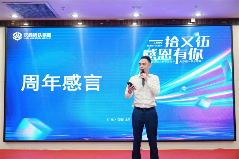 總裁史詩鑫先生為三位主角頒發(fā)周年榮譽牌,并現(xiàn)場感謝三位骨干的辛勤付出,感謝他們?yōu)闈h鑫、為深圳市場開拓而做出的貢獻。這十年是漢鑫的高速發(fā)展期,三位作為深圳區(qū)域的頂梁柱,對漢鑫的發(fā)展功不可沒。希望未來繼續(xù)與三位并肩作戰(zhàn),共同進步,希望他們未來能取得更大的成就。