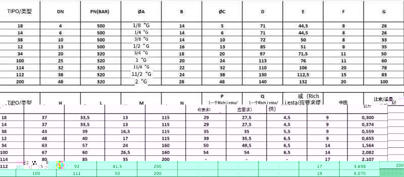 Tognella開關(guān)閥規(guī)格參數(shù):