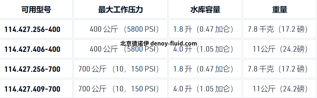 Amtec 油手泵系列 114.427系列型號(hào)