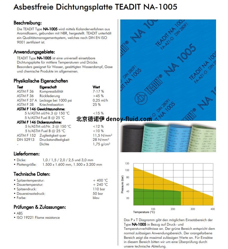 TEADIT NA-1005 型采用壓延工藝,由與 NBR 粘合的芳綸纖維制成。TEADIT 擁有經(jīng)過 DIN EN ISO 9001 認證的質量管理體系。